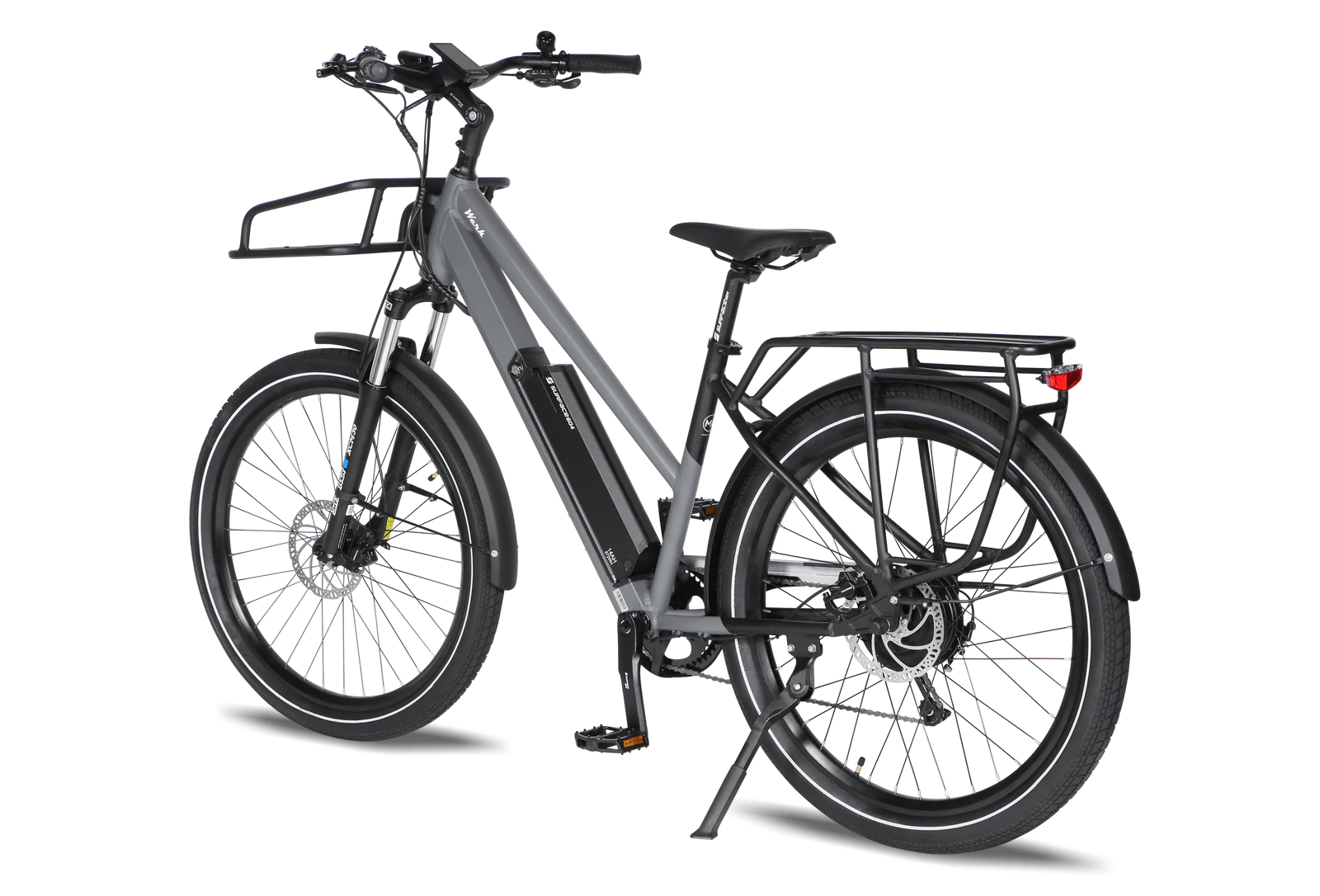 - Safety Features: The Werk is equipped with a bright LED headlight, taillight, and brake light, ensuring maximum visibility during day and night rides. The hydraulic disc brakes deliver reliable stopping power in all weather conditions, ensuring your safety on every journey.